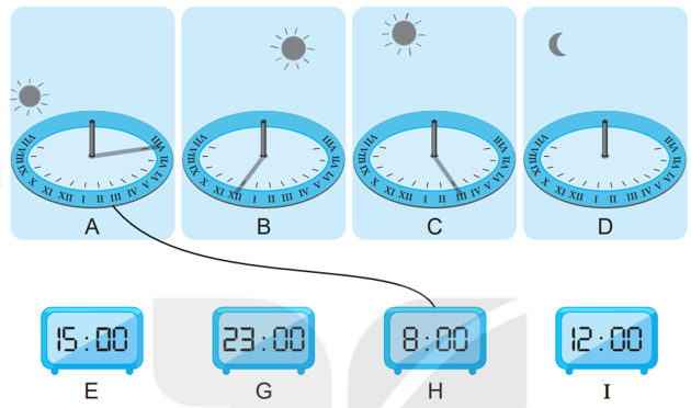 Nối hai đồng hồ chỉ cùng giờ (theo mẫu).