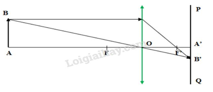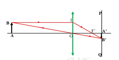 – Từ B kẻ tia tới qua quang tâm O thì tia ló truyền thẳng tới cắt phim PQ tại ảnh B’ của B.