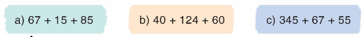a) 67 + 15 + 85 = 67 + (15 + 85)