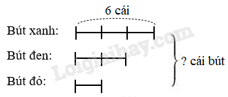 Bước 3: Số cái bút có trong hộp = số bút màu xanh + số bút màu đen + số bút màu đỏ