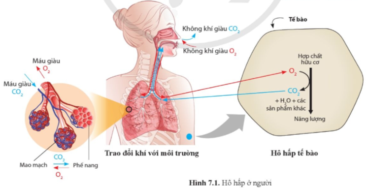 Quan sát hình 7.1 và cho biết vai trò của hô hấp. Nêu mối quan hệ giữa quá trình trao đổi khí với môi trường và quá trình hô hấp tế bào.