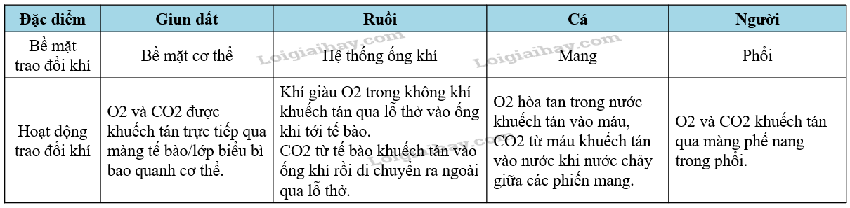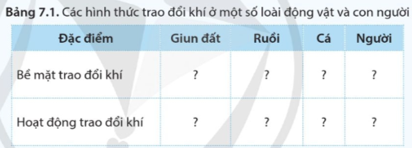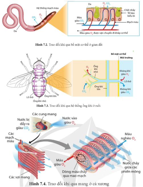 Quan sát hình 7.2, 7.3, 7.4 và chỉ ra đặc điểm trao đổi khí của từng đối tượng trong hình.