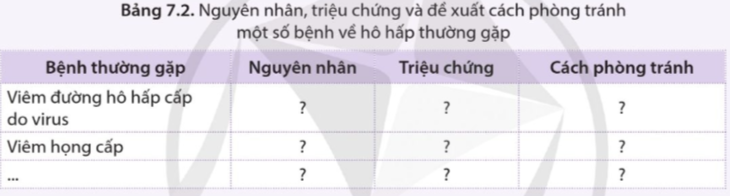 Tìm hiểu thông tin và hoàn thành bảng 7.2.