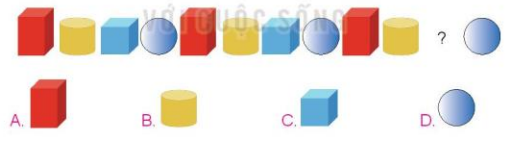 b) Quan sát hình vẽ ta nhận thấy các khối được sắp xếp theo thứ tự: Khối hộp chữ nhật, khối trụ, khối lập phương, khối cầu, khối hộp chữ nhật, ….