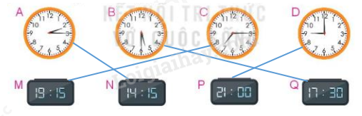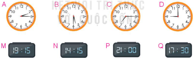 Quan sát đồng hồ để tìm thời gian thích hợp.
