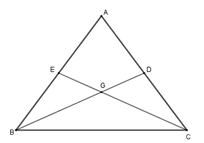 Gọi giao điểm của hai đường trung tuyến \(BD\) và \(CE\) là \(G\) thì \(G\) là trọng tâm tam giác \(ABC.\)