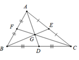 \(GA = \dfrac{2}{3}AD;\,\,GB = \dfrac{2}{3}BE;\,\,GC = \dfrac{2}{3}CF\)