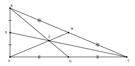 Ta có $AM,BN,CE$ là các đường trung tuyến ứng với các cạnh $BC,AC,AB$ của tam giác vuông $ABC$