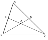 Hai đường trung tuyến \(BD;CE\) cắt nhau tại \(G\) suy ra \(G\) là trọng tâm tam giác \(ABC.\)