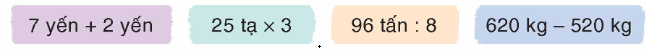 Thực hiện phép tính với các số tự nhiên rồi viết thêm đơn vị đo khối lượng sau kết quả vừa tìm được.