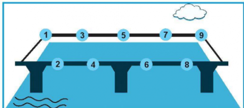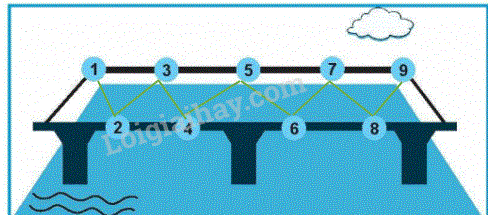Dùng thước thẳng nối lần lượt các số từ 1 đến 9 để được cây cầu.
