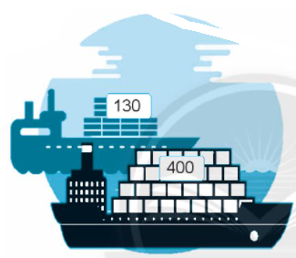 Tàu màu xanh chở ít hơn tàu màu đen bao nhiêu kiện hàng?