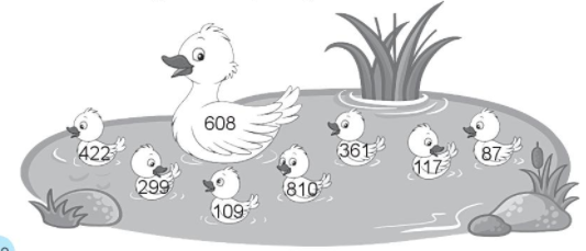 Các số bé hơn 300 có trong hình là: 299, 109, 117, 87.