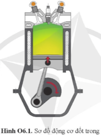 Quan sát sơ đồ động cơ đốt trong như hình O6.1. Hãy cho biết: