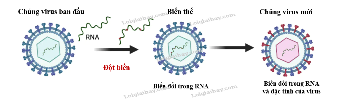 Bộ gene của virus bị đột biến và thay đổi so với bộ gene ban đầu, tạo ra các biến thể mới. Quần thể virus có kích thước lớn, khả năng nhân lên nhanh, lây nhiễm rộng, nên xác suất đột biến rất cao và tạo ra rất nhiều biến thể.
