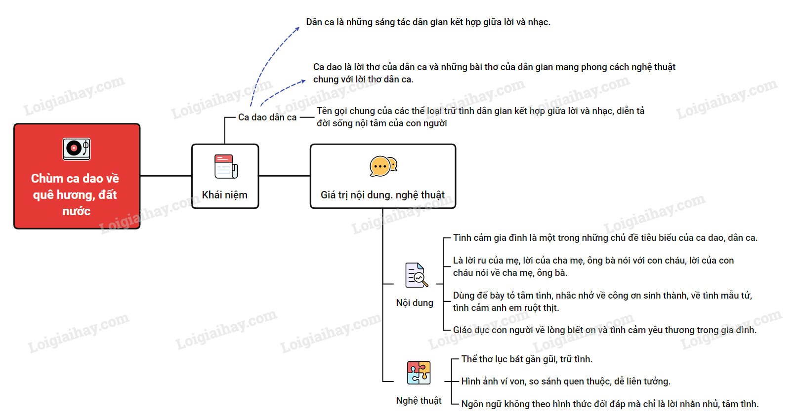 Sơ đồ tư duy “Chùm ca dao về quê hương đất nước”: