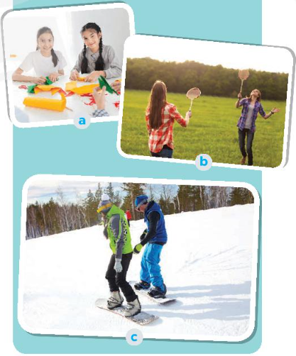 c. They are going snowboarding. (Họ đang trượt tuyết.)