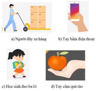 → lực tay cầm quả táo < lực đeo ba lô < lực đẩy xe hàng