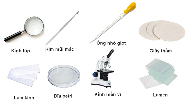 Dựa vào các dụng cụ thực hành quan sát sinh vật đơn bào.