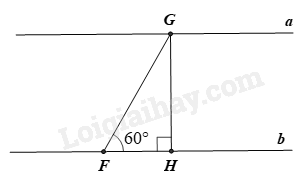 Một con thuyền ở địa điểm \(F\) di chuyển từ bờ sông \(b\) sang bờ sông \(a\) với vận tốc trung bình là \(6\) km/h, vượt qua khúc sông nước chảy mạnh trong \(5\) phút. Biết đường đi của con thuyền là \(FG\) , tạo với bờ sông một góc \(60^\circ \) .