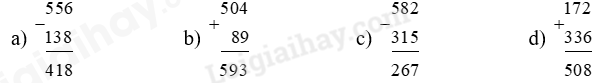 – Cộng hoặc trừ các chữ số thẳng cột lần lượt từ phải sang trái