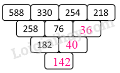 Quy luật: Hiệu của hai số đứng cạnh nhau bằng số ở giữa của hàng dưới. Từ đó em xác định được các số còn thiếu.