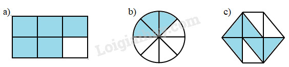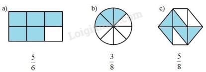 Phân số chỉ phần tô đậm của mỗi hinh có tử số là số phần được tô màu, mẫu số là tổng số phần bằng nhau của hình đó.