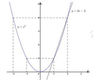 Cho parabol \(\left( P \right):\;\;y = {x^2}\) và đường thẳng \(\left( d \right):\;\;y = 3x – 2.\)