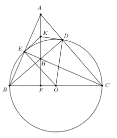 Lại có K là trung điểm của AH \( \Rightarrow K\) là tâm đường tròn ngoại tiếp tứ giác AEHD.