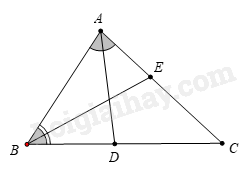 Quan sát hình vẽ ta thấy AD là tia phân giác của \(\widehat {BAC}\); BE là tia phân giác của \(\widehat {ABC}\).