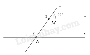 Câu 12.  Cho hình vẽ, biết \(x\,{\rm{//}}\,y\) và \(\widehat {{{M}_1}}{ = }55^\circ \). Tính số đo góc \({N_1}\).