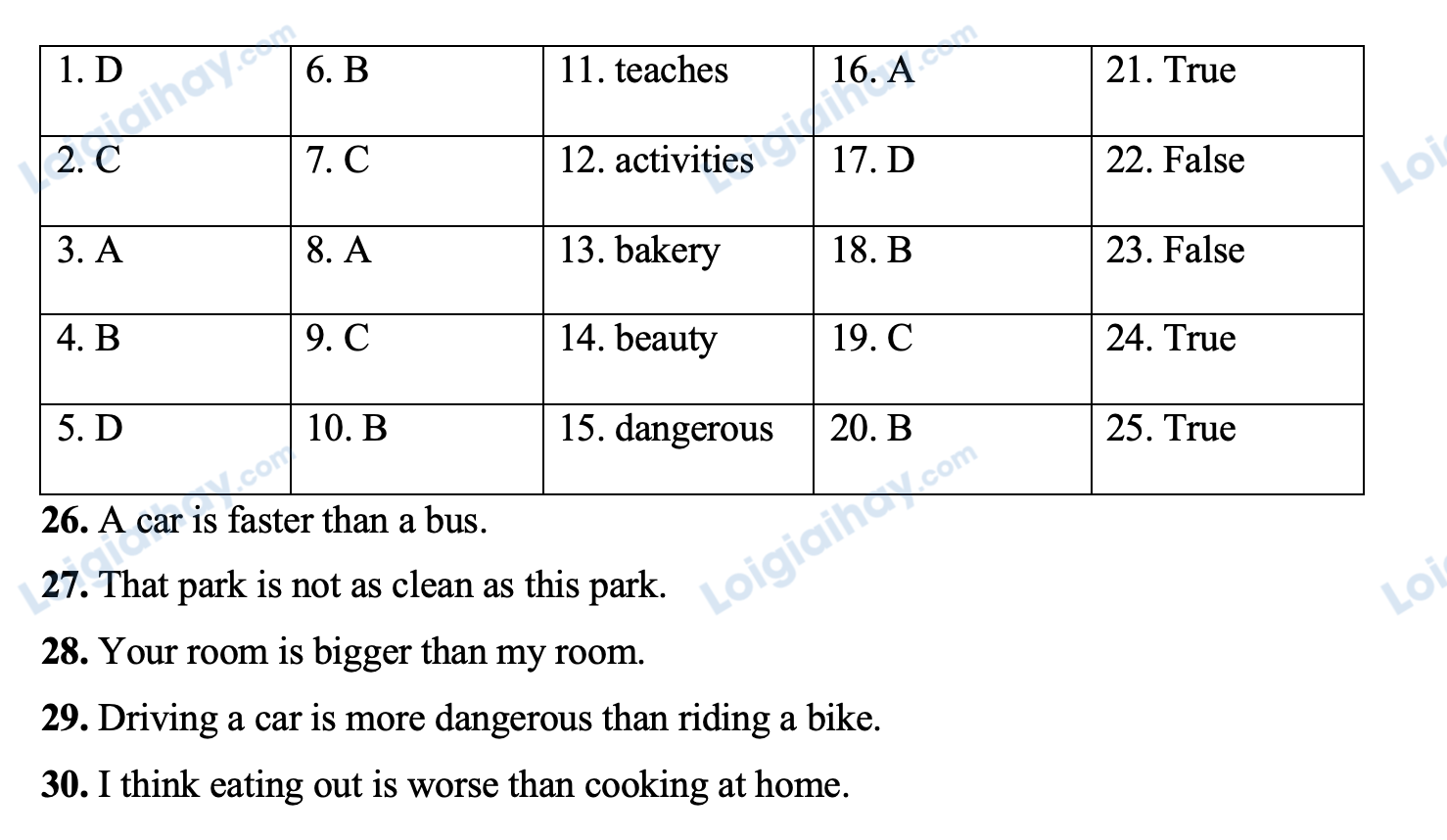 Đáp án: Driving a car is more dangerous than riding a bike.
