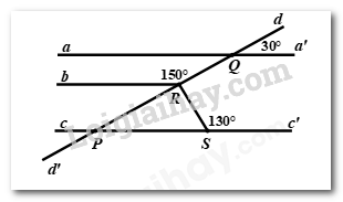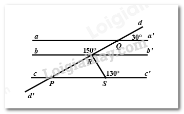 Do \(aa’//bb’\) nên \(\angle dPc’ = \angle dQa’ = {30^0}\) (hai góc đồng vị). Vì vậy \(\angle dPc’ = \angle QRb’\) (cùng bằng \({30^0}\)).