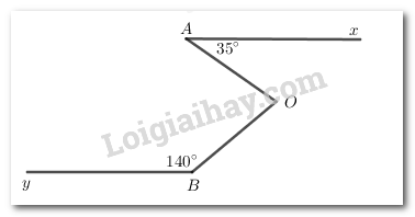 Cho hình vẽ, biết \(Ax//By,\angle OAx = 35^\circ ,\angle OBy = 140^\circ \). Tính \(\angle AOB\)?