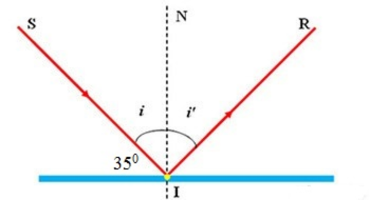 Câu 11: Một tia sáng chiếu tới SI đến gương phẳng và hợp với mặt phẳng một góc 35o như hình vẽ. Kết luận nào sau đây đúng?