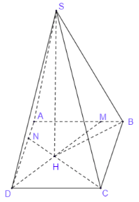 Tìm góc tạo bởi \(SB\) và mp\(\left( {ABCD} \right)\) rồi tính độ dài \(BH\) để suy ra độ dài đường cao \(SH\)