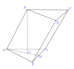 Thể tích của khối lăng trụ đã cho là \({V_{ABC.A’B’C’}} = A’G.{S_{ABC}} = 2a.\sqrt 3 {a^2} = 2\sqrt 3 {a^3}\)