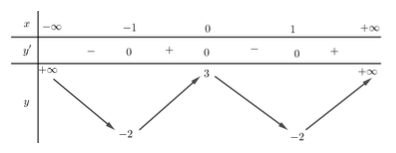 \(g’\left( x \right) = 0 \Leftrightarrow \left[ \begin{array}{l}x = 0\\x = 2\\x = – 1\end{array} \right.\)