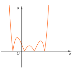 Hàm số \(y = \left| {f\left( x \right)} \right|\) có 7 điểm cực trị (với \(f\left( x \right)\) là hàm bậc 4) khi và chỉ khi hàm số \(f\left( x \right) = 0\) có 4 nghiệm phân biệt như hình bên dưới.