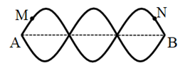 Cho hình ảnh sóng dừng trên một sợi dây AB như hình sau. Hai điểm M và N dao động