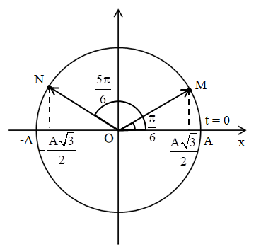 Trường hợp 2: ở thời điểm \(\dfrac{1}{3}\,\,s\), vecto quay ở vị trí N, ta có:
