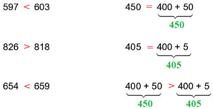 + Nếu cùng số trăm thì mới xét số chục: Số nào có số chục lớn hơn thì số đó lớn hơn.