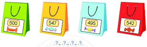 Sắp xếp các túi kẹo từ ít tới nhiều.