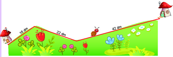 a) Tính độ dài từ nhà bạn Sên đến nhà bà ngoại của Sên tức là ta tính độ dài đường gấp khúc có ba đoạn thẳng độ dài lần lượt là 16 dm, 22 dm và 42 dm. Để tính độ dài đường gấp khúc đó là tính tổng  của 16 dm, 22 dm và 42 dm.