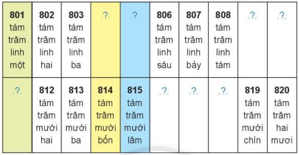 Để đọc các số từ 811 đến 819 ta đọc “tám trăm mười + số đơn vị”.