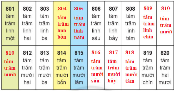 – Để đọc các số từ 801 đến 809 ta đọc “tám trăm linh + số đơn vị”.