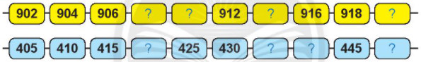 – Hàng bên trên: Đếm thêm 2 đơn vị rồi điền các số còn thiếu vào ô có dấu “?”.