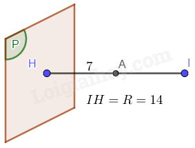 Diện tích mặt cầu: \(784\pi = 4\pi {R^2} \Rightarrow R = 14 = IH\).