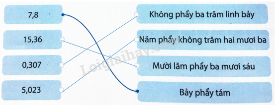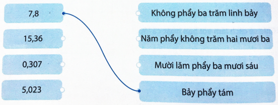 Em nối mỗi số thập phân với phân số thập phân theo mẫu.