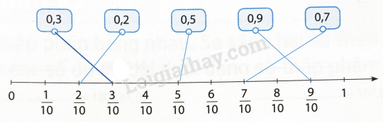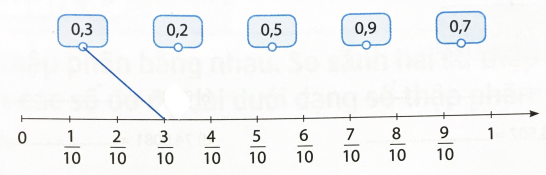 Quan sát hình vẽ, viết số thập phân thích hợp vào chỗ chấm: